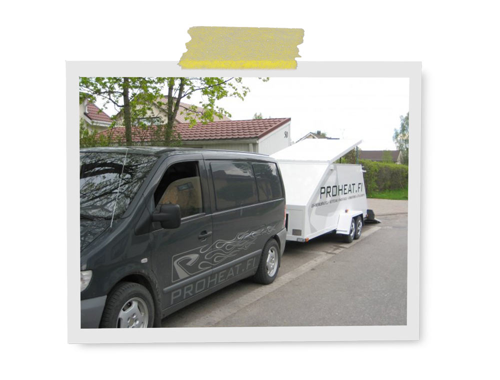 Yrityksen alkutaipaleella Proheat keskittyi pieniin lattialämmityskohteisiin. Ja nopeasti siirryttiin asentamaan lattialämmitysputkistoja metrihinnalla pääkaupunkiseudulla. Alkuun kaikki yrityksen tavarat ja omaisuus mahtui farmariauton tavaratilaan. Auton takatila toimi myös konttorina ja majoituspaikkana yöaikaan huoltoasemien parkkipaikoilla.